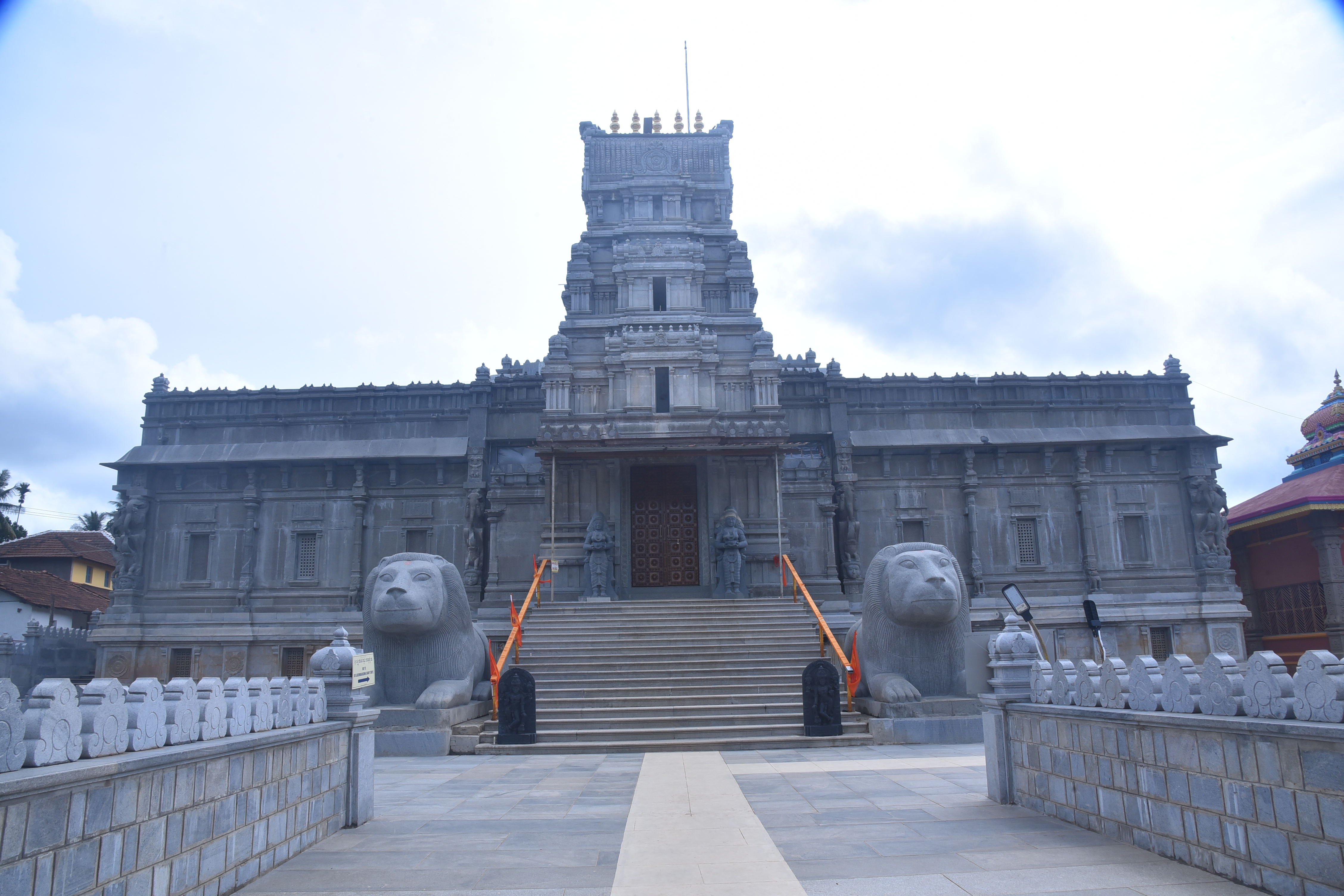 Anantha Sri Vibushita Jagadguru Shankaracharya Parama Pujya Sri Sri Swayamprakasha Sachidananda Saraswati Mahaswamiji is the present Peethadipati of this esteemed Dharma Peetham. Mahaswamiji has transformed the ancient mutt into a magnificent temple. This unique temple houses 2 Sanctum Sanctorum (Garbha Grihas) of Sri Lakshmi Narasimha. The lower Sanctum Sanctorum houses a 32-feet Lakshmi-Narasimha Mahayantra in the form of a pillar known as Vajrasthamba. Atop at the Bindu-staana of the powerful Vajrasthamba enshrines the auspicious Lakshmi Narasimha Swamy, meticulously carved from Maragatha stone.