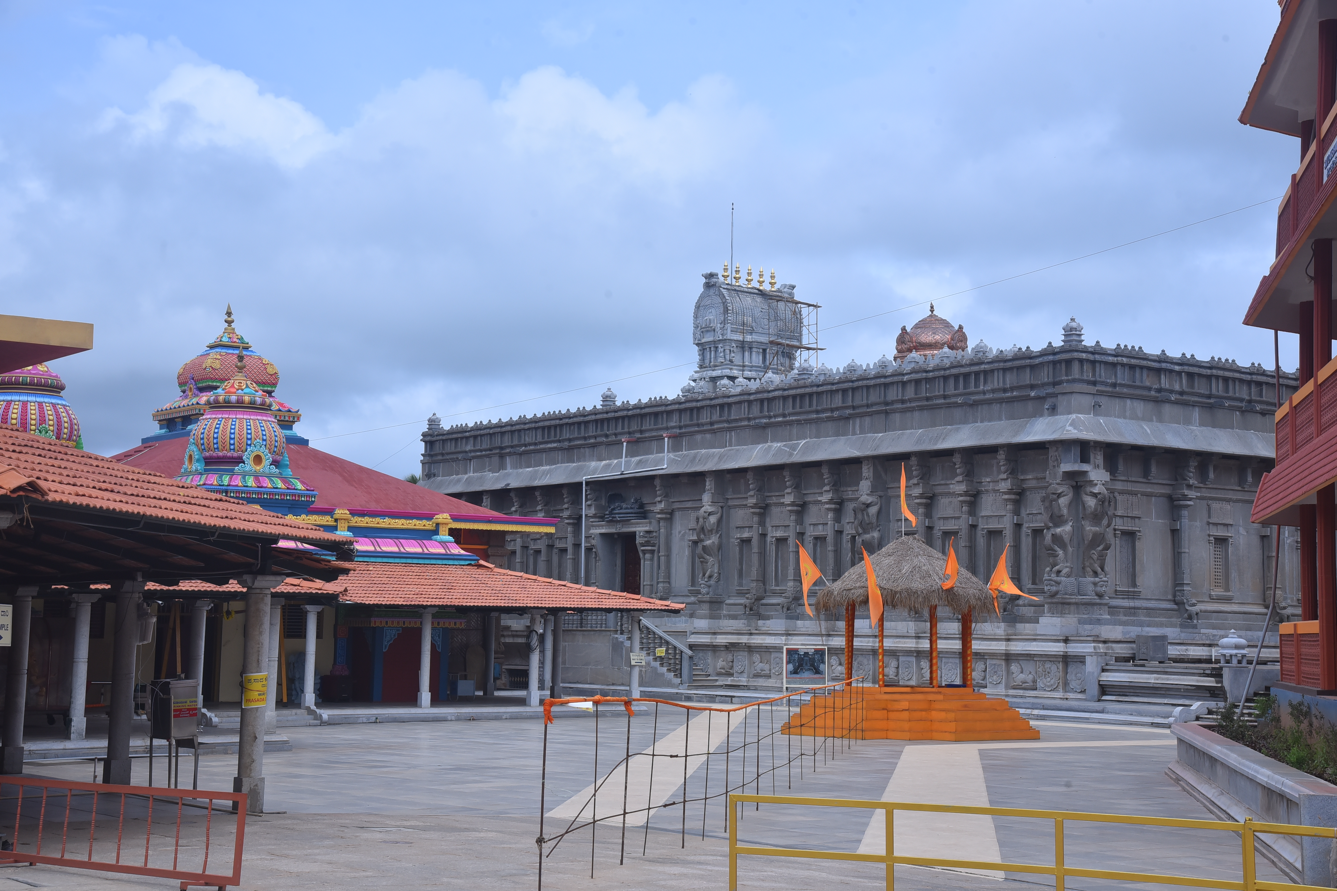 Anantha Sri Vibushita Jagadguru Shankaracharya Parama Pujya Sri Sri Swayamprakasha Sachidananda Saraswati Mahaswamiji is the present Peethadipati of this esteemed Dharma Peetham. Mahaswamiji has transformed the ancient mutt into a magnificent temple. This unique temple houses 2 Sanctum Sanctorum (Garbha Grihas) of Sri Lakshmi Narasimha. The lower Sanctum Sanctorum houses a 32-feet Lakshmi-Narasimha Mahayantra in the form of a pillar known as Vajrasthamba. Atop at the Bindu-staana of the powerful Vajrasthamba enshrines the auspicious Lakshmi Narasimha Swamy, meticulously carved from Maragatha stone.
